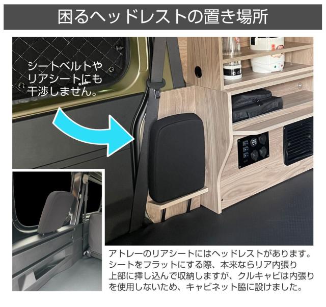 車中泊や車中避難で重宝するアトレー(ハイゼットカーゴ)S700系専用設計のキャビネット(棚)キットです! 本製品はS700系のアトレー・ハイゼットカーゴおよび同型のOEM供給車に設置する事が可能な車載棚(運転席・助手席側)とテーブル板のセットとなり 普通の軽商用車を手軽にキャンピングカー仕様に進化させる事が可能です。 別売の 炊飯器タケルくん、湯沸器ワクヨさん、ポータブル電源ミツルくん 等の直流家アイテムに合わせて設計されており 直流家シリーズ製品を活用する事でより快適に過ごす事ができます! クルージングキャビネットはバッテリーからの電源とアクセサリー電源からの信号線を取り、ボルト&ナットで設置するだけの簡単装着となります。 AC100Vのインバーターやサブバッテリーの必要が無く、クルマに備え付けのバッテリー性能を最大限に利用して10Aのシガーソケット×2個や照明、USB電源等を使用する事が可能です。 また、直流家シリーズのポータブル電源ミツルくんや、ソーラーチャージャー・ソラさんを外部電源として入力させる事が出来ます。 エンジン停止(駐車中)の状態でも外部電源入力により電装装備を使う事が可能です! ▼換気扇を標準装備▼ 車中泊で重宝する装備と言えば「照明器具」と「換気扇」です。 特に換気扇はキャンピングカー以外では装備されている車はほとんどありません。 本製品にはDC12Vのハイパワー換気扇と運転席と助手席側のLED照明(白光/電球色変化)を標準装備しております! ※画像はイメージとなります。直流家製品およびキッチン備品等は本製品には含まれておりません。 ▼外部シャワーを標準装備!▼ アトレー/ハイゼットカーゴ用のクルージングキャビネットから外部シャワーが標準装備となった他、キャビネット全体の表面にはグレー系の木目を採用しております! |