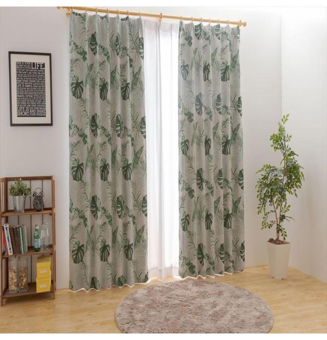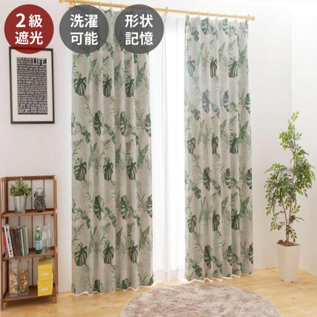 カーテン ドレープカーテン 遮光 ジャングル 葉っぱ柄 グリーン 植物 2級遮光 ウォッシャブル ドレープカーテン 洗える 大柄 洗濯可能 おしゃれ 北欧(代引不可)【送料無料】