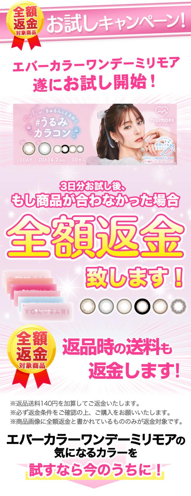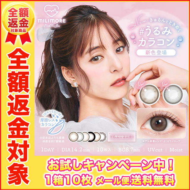【お試し全額返金キャンペーン】【メール便送料無料】エバーカラーワンデー ミリモア【1箱10枚】新木優子 カラコン ワンデー 度あり ナチュラル カラコン ワンデー 度なし カラーコンタクト1day 度あり カラコン 度あり 水光 カラコン 水光レンズ UVカット ∀