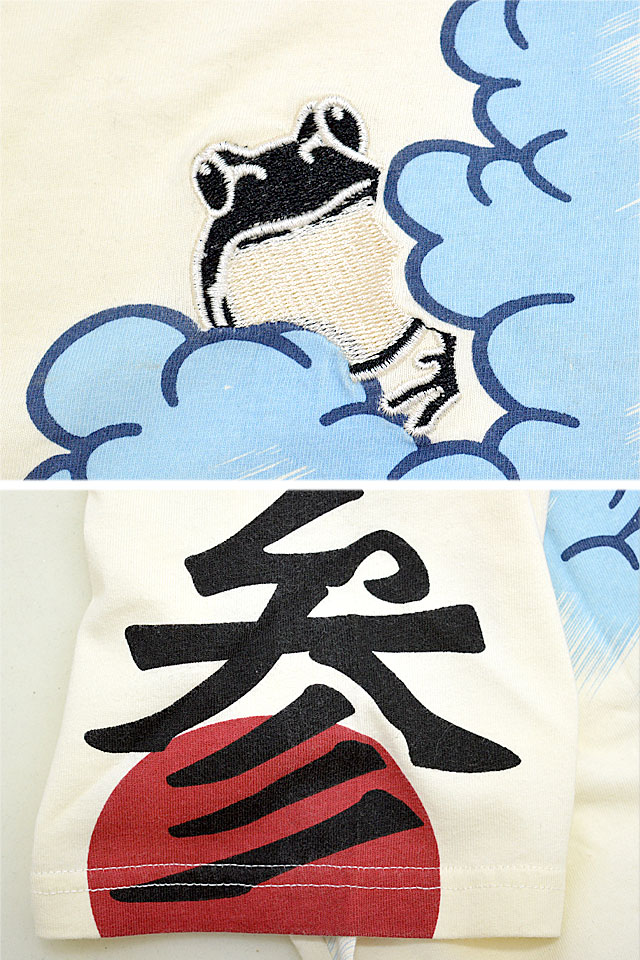 「参丸一」さんから「花鳥風月半袖Tシャツ(ST-80014)」のご紹介です。 今回は花鳥風月をモチーフにしたデザイン。 自然界の美しい風物を題材にした、参丸一らしさの漂う半袖Tシャツです。 フロント、バックにはお馴染みの蛙をワンポイントで刺繍。 フロントには「風」バックには「月」が隠れています。 左袖にはブランドの頭文字である「参」をプリントしました。 バック上部のロゴは刺繍。 フロント裾には、ブランドオリジナルの布タグを縫い付けました。 ボディーには、柔らかな肌触りでありながらも刺繍に負けないコシのある綿100%のTシャツ生地を採用しました。 | |||||||||||||||||||||||||
