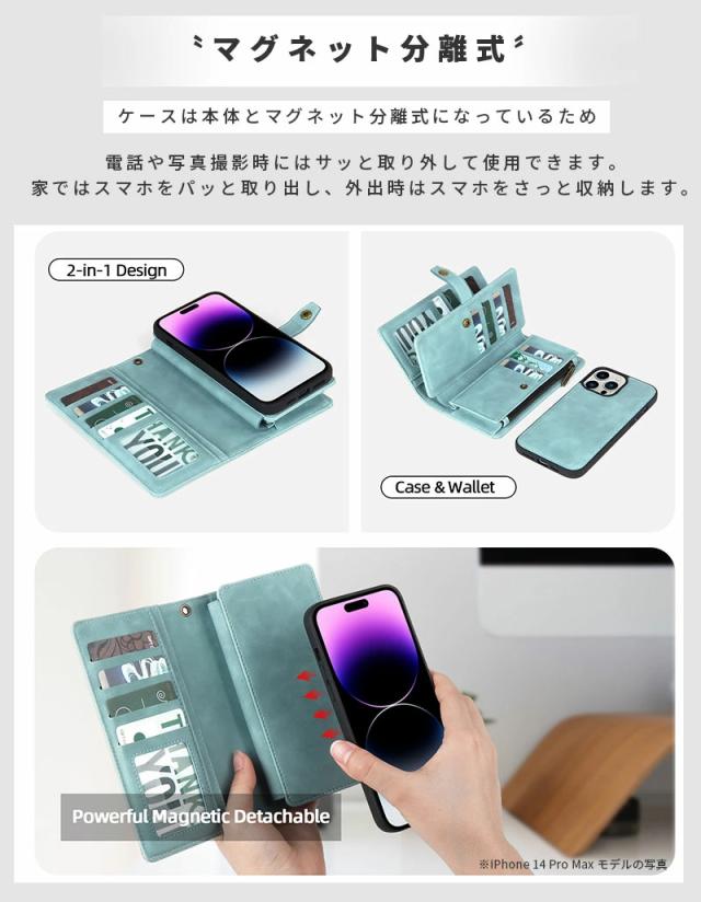 iphone 14/14pro/14plus/14promax手帳型ケース ストラップ 分離式 マグネット iphone 13/13pro/13 pro max ケース 手帳型 iphone 12/12pro/12promax 手帳型 ケース 収納抜群 大容量 ストラップ 分離式 マグネット