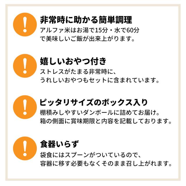 - 防災セミナーで展示販売されていて、試食して美味しかったですし、直接説明をお聞きすることもできたので、安心して購入できました。防災用です。