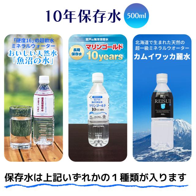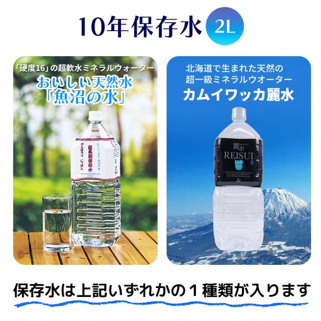 ●10年保存水は、いずれかの1種類が入ります。