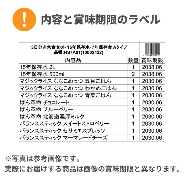 3日分 非常食セット 15年保存水+7年保存食 詰め替え可能 Aセット HS7A01 1セット 1人用 アルファ米 保存パン 保存水 長期保存 3日間生きのびる 防災食 保存食 ななこめっつ ぱん革命 クッキー 防災グッズ 災害備蓄 お菓子 避難 災害時