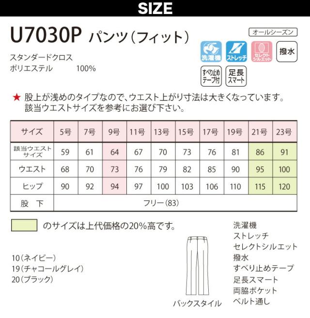 UNILADY パンツ(フィットシルエット/ローライズ) 21号 23号 U7030P 大きいサイズ 無地 オールシーズン 制服 事務服 ユニレディ ヤギコーポレーション