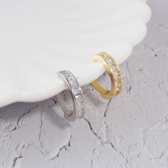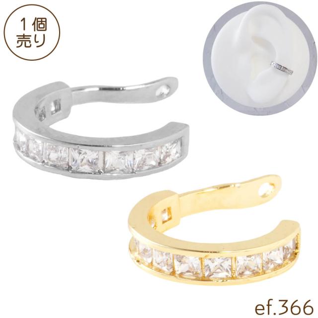 [ef.366] スクエア ジュエル ライン イヤーカフ 合金 ジルコニア ジュエル ビジュー パヴェ イヤーカフス イヤカフ ノンホール