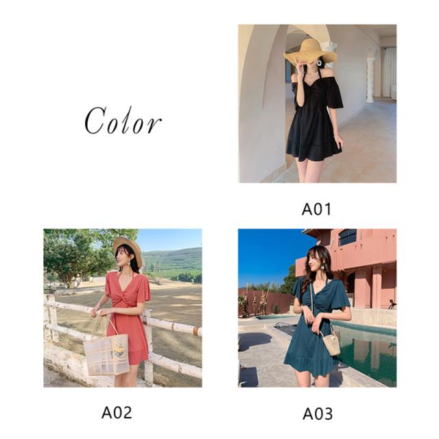 水着 レディース ワンピース 体型カバー ワンピース水着 水着 ワンピース型 肩出し 小胸バンドゥ 水着 韓国風 大きいサイズ 可愛い ウェア 温泉