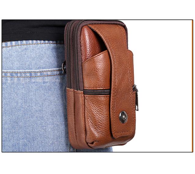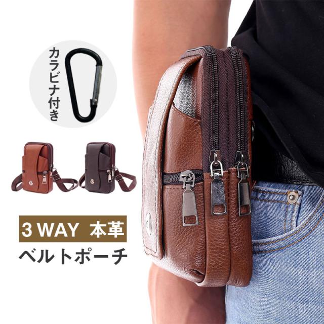 ベルトポーチ メンズ 革 本革 スマホ ポーチ ウエストポーチ 仕事 ショルダー バッグ ミニショルダー スマホバッグ バイクポーチ カラビナ付き