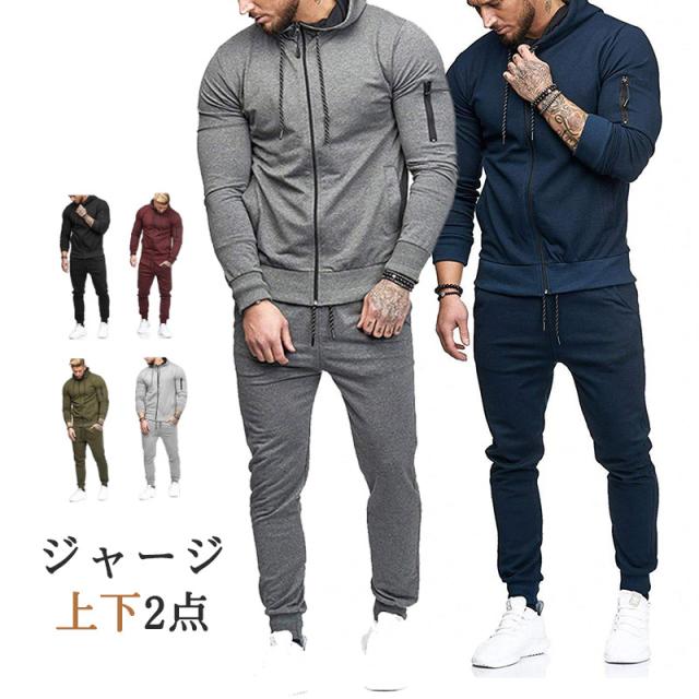 ジャージ メンズ 上下2点 セット 長袖 パーカー フード付き カジュアル 前開け スウェットセット 秋冬 トレーニング スポーツウェア 運動着