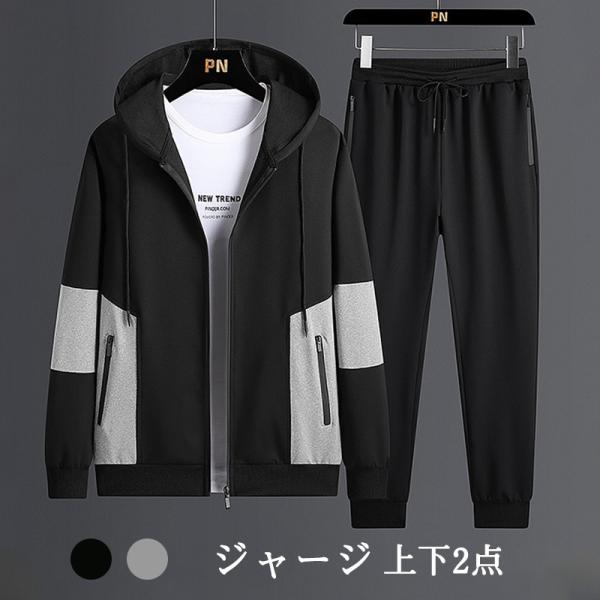 ジャージ メンズ 上下2点 セット 長袖 パーカー フード付き カジュアル 前開け スウェットセット 秋冬 トレーニング スポーツウェア 運動着