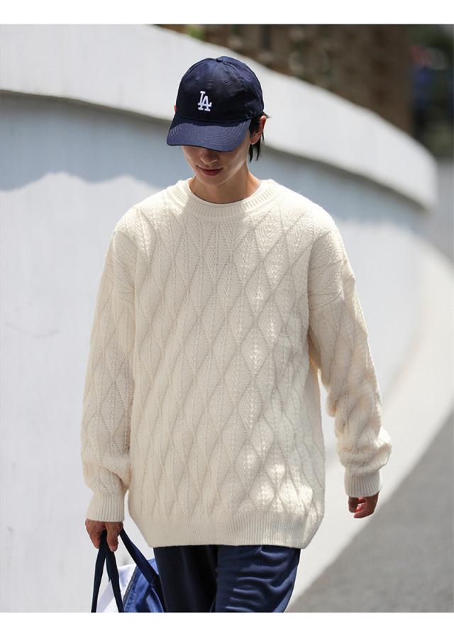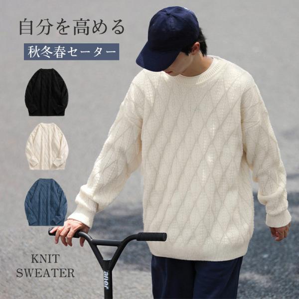 ニットセーター メンズ レディース クルーネック ケーブル カップル ゆったり カットソー 無地 シンプル セーター 長袖 男女兼用 秋冬 トップス