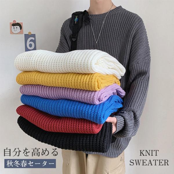 ニットセーター メンズ クルーネック ケーブル編み カットソーニット 無地 ゆったり シンプル ビジネス 重ね着 セーター 長袖 男 秋冬 トップス