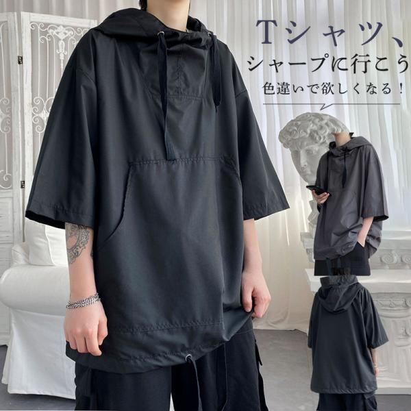 Tシャツ メンズ 夏物 半袖 五分袖 アメカジ フード付き 作業着スタイル カジュアル ファッション 速乾 汗対策 汗染み防止 おしゃれ