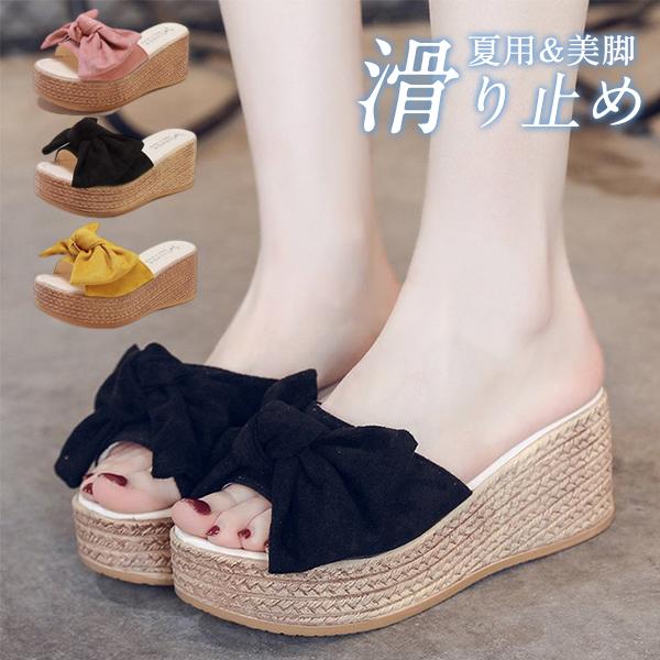 サンダル レディース 厚底ソール 普段履き 滑り止め 蒸れない リボンサンダル リゾートサンダル 歩きやすい ヒールサンダル くない オシャレ