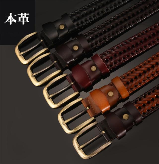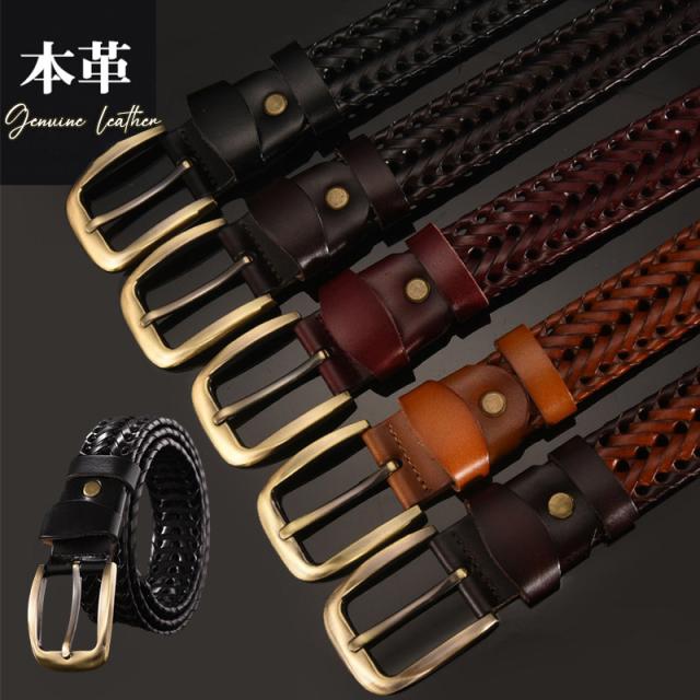 ベルト メンズ レディース 男女兼用 父の日 ギフト レザー 牛革 紳士用 カジュアル ビジネス 編み込み 長さ調整可能 キャメル ブラウン おしゃれ