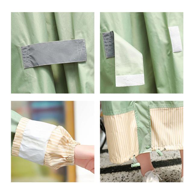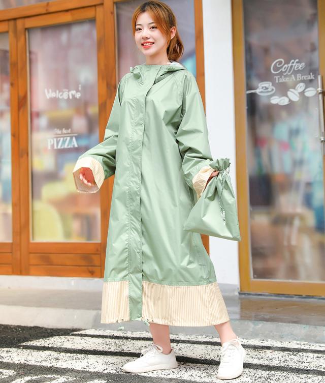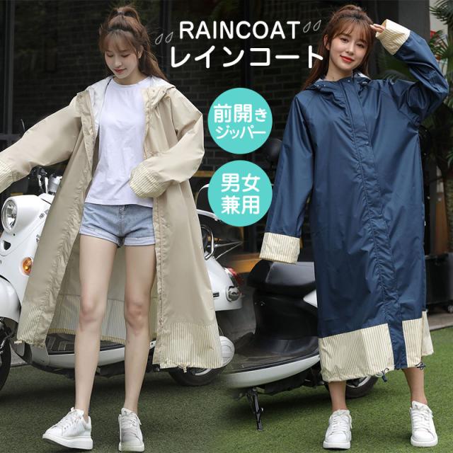レインコート メンズ レディース 男女兼用 自転車 リュック対応可 ロング ストライプ 切り替え 袖口ゴム 裾にドローコード スタンドカラ