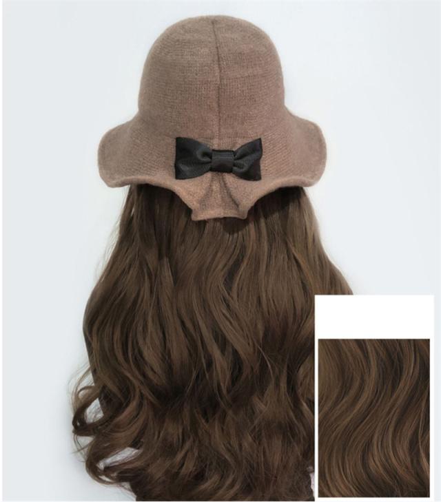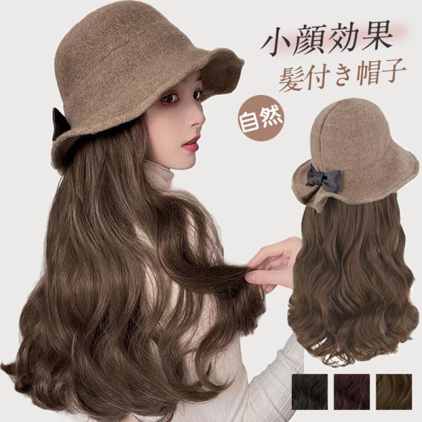 帽子ウィッグ レディース かつら ロング巻き カール 仮装 暖かい つけ毛 エクステ キャップ 髪付き帽子 セミロング 自然パーマ ニット帽子 日常用