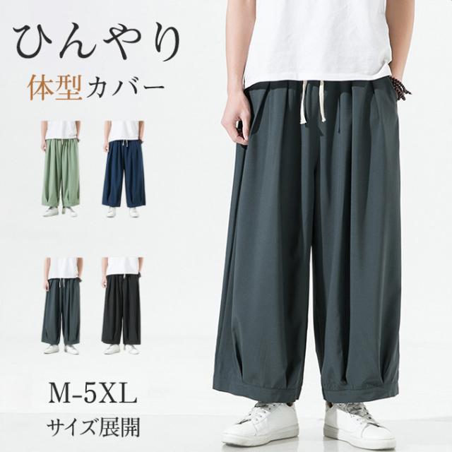 ワイドパンツ メンズ ガウチョパンツ バギーパンツ 大きいサイズ 太め ゆったり ひんやり 無地 ウエストゴム イージーパンツ 涼しいズボン 春夏秋冬