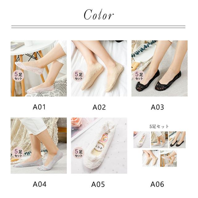 フットカバー 脱げない 5足セット レディース 靴下 ソックス おしゃれ レース かわいい 雰囲気 透け おしゃれ