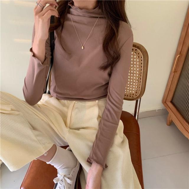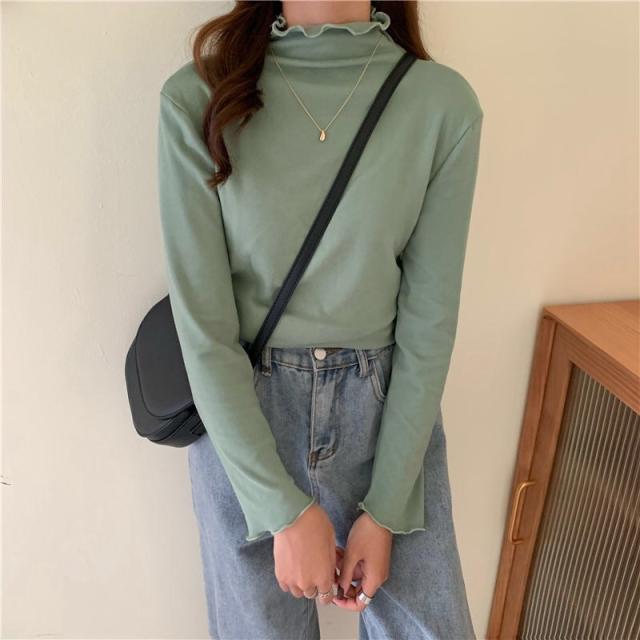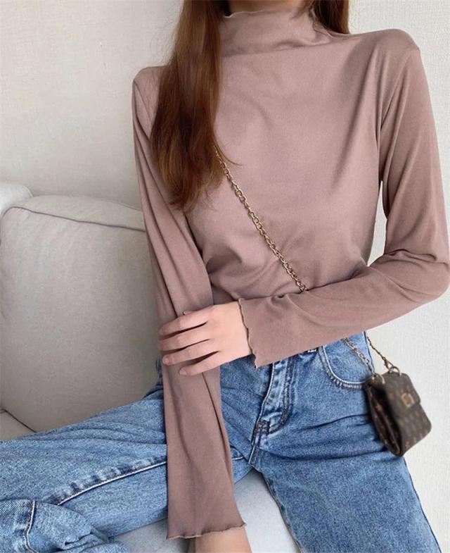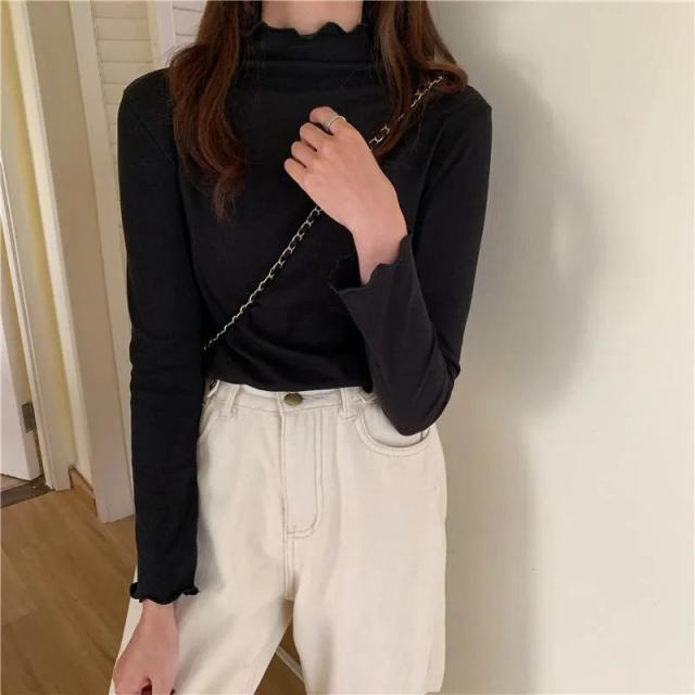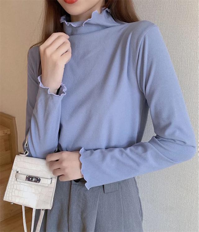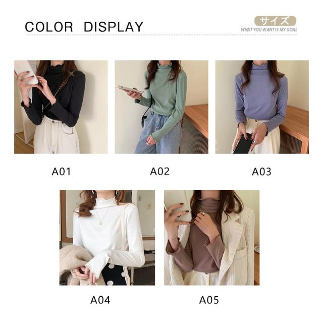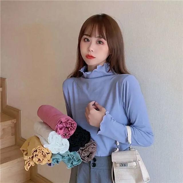 当日発送 カットソー レディース トップス タートルネック 一部即納 フリル 春 インナー 長袖 タートル 無地 重ね着 レイヤード Tシャツ 柔らか コーデ 着痩せ 秋