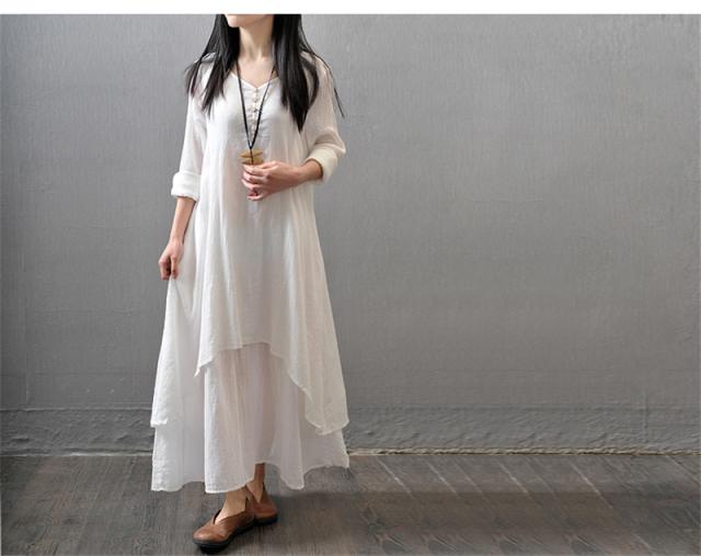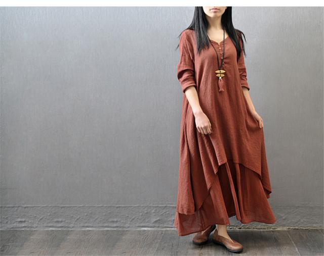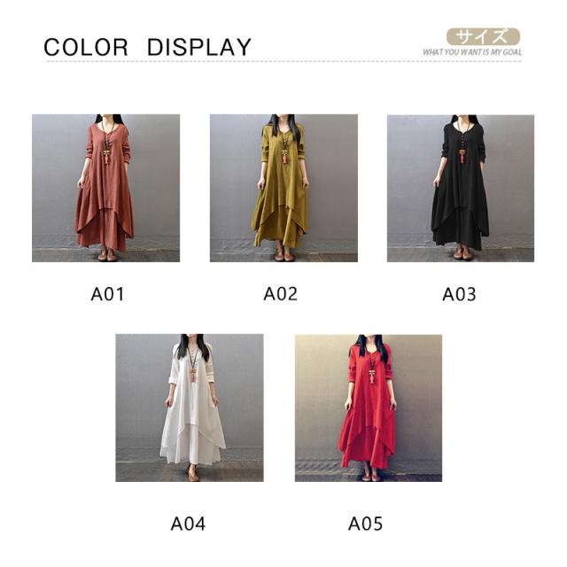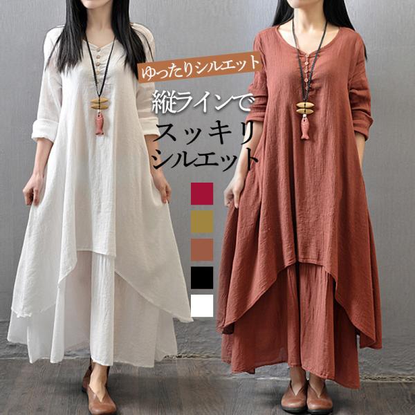 ワンピース レディース 長袖 きれいめ カジュアル Aライン ロング丈 着痩せ 綿麻ワンピース マキンピース ゆったり 美脚 脚長 通勤 通学