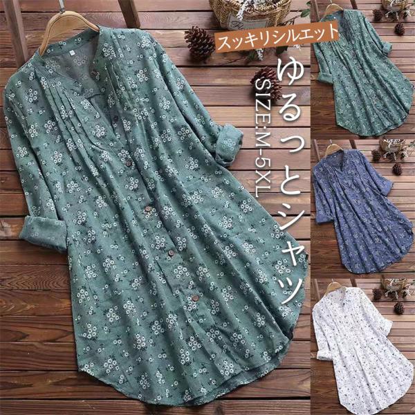 チュニック ワンピース レディース シャツワンピース ブラウス シャツ 花柄 長袖 ロングシャツ ゆったり 体型カバー 30代 40代 50代 春夏