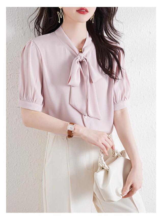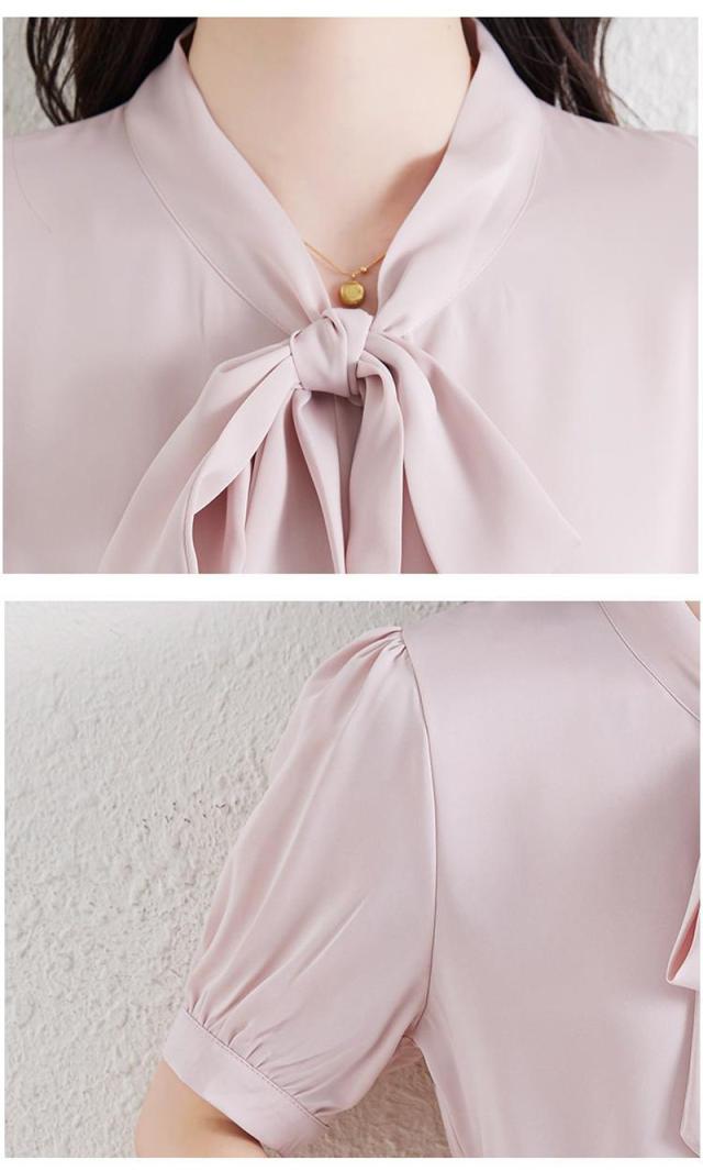 セール ブラウス 半袖 レディース シャツ トップス 切替 カットソー 重ね着 リボン 通勤 春夏 Tシャツ 柔らかい チュニック ふわっと 送料無料