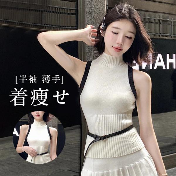 カットソー トップス レディース 無地 袖なし 着?せ ゆったり カジュアル アメカジ 普段着 日常 細身 ハイネック 高級感 薄手 オフィス