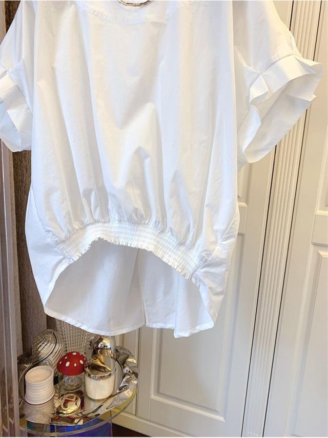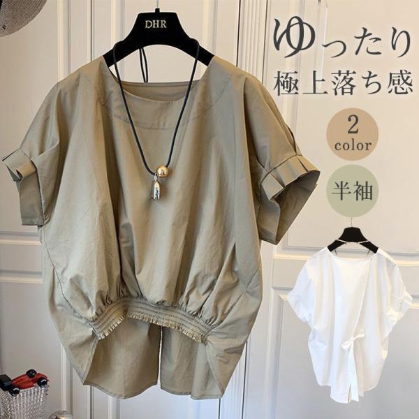 セール ブラウス 半袖 レディース シャツ トップス 切替 カットソー 重ね着 流行り 通勤 春夏 Tシャツ 柔らかい チュニック ふわっと 送料無料