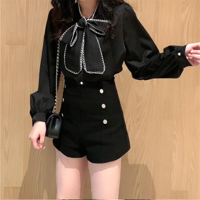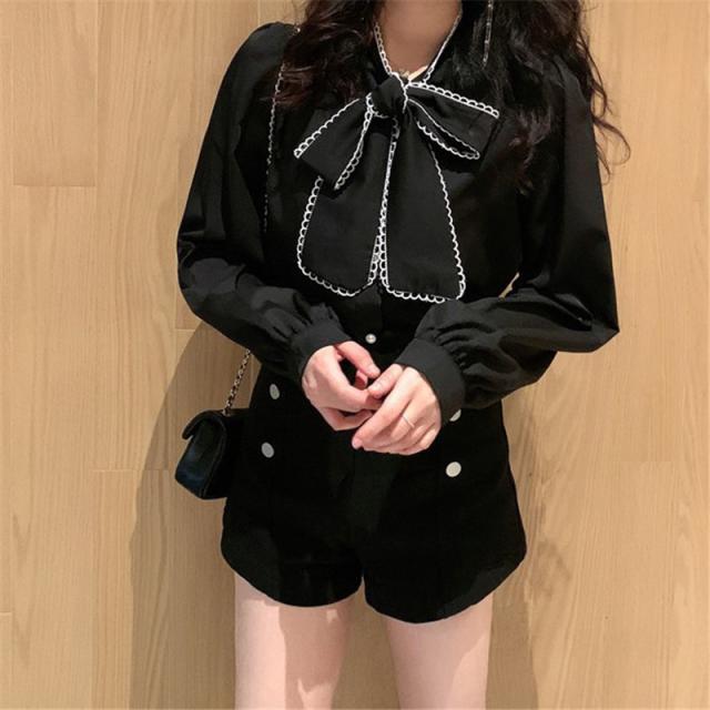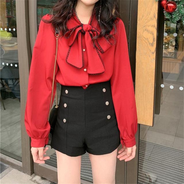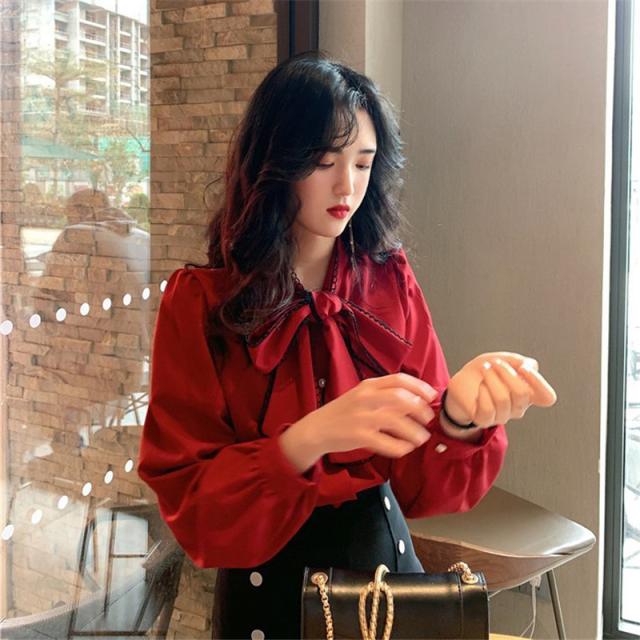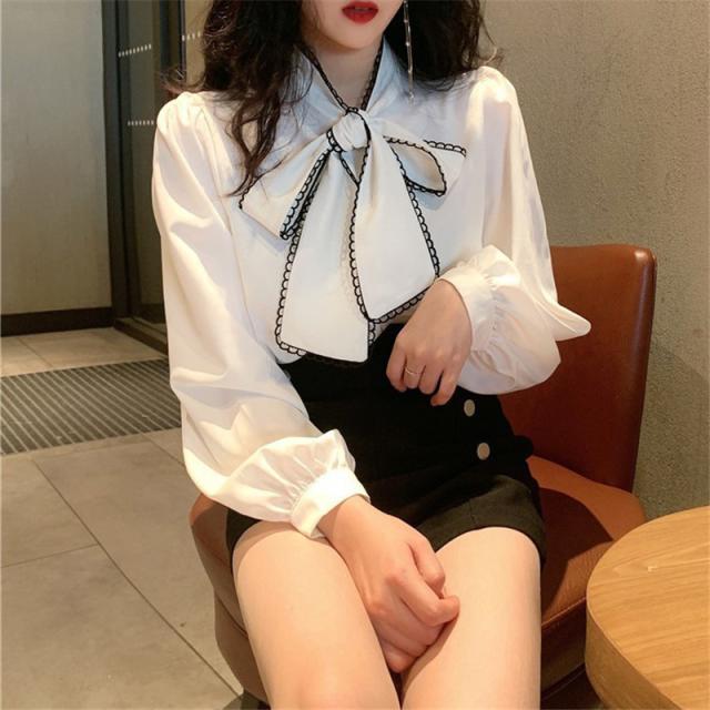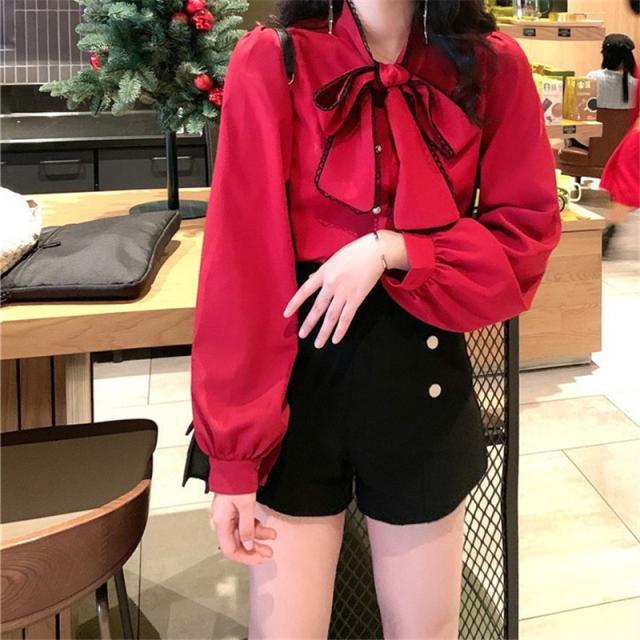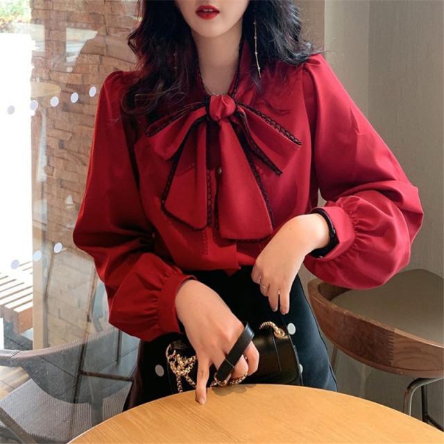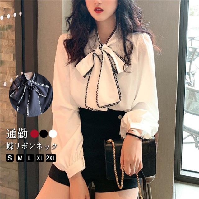 シャツブラウス レディース きれいめ 春夏秋 オシャレ セレモニー シフォン ボリューム袖 長袖 トップス 蝶リボンネック 上品 大人 通勤 ゆったり