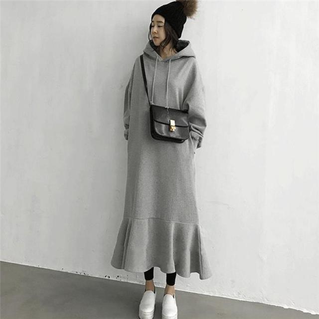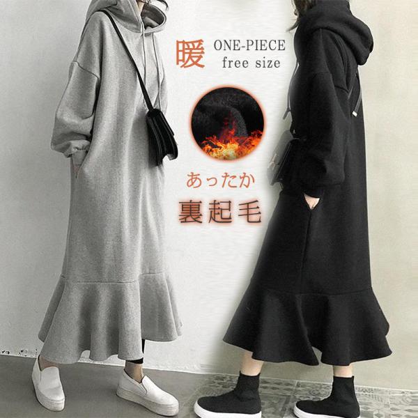 裏起毛 ワンピース マーメイド パーカーワンピース レディース 秋冬 長袖 暖かい 極暖 あったか ビッグシルエット ゆったり ロング丈 サイド 綿混