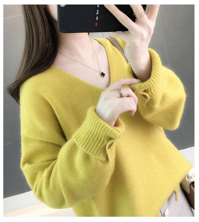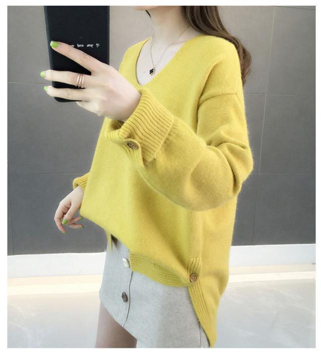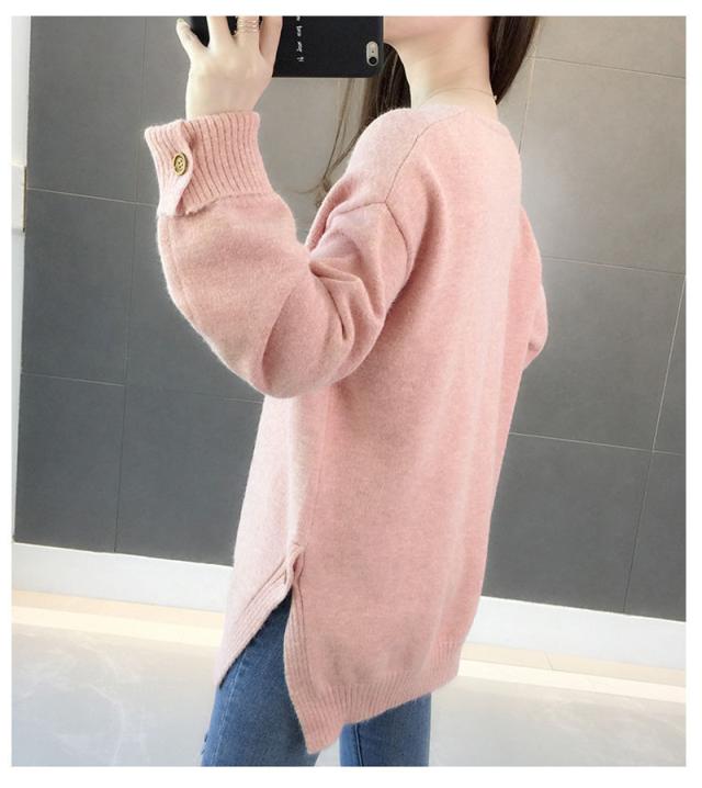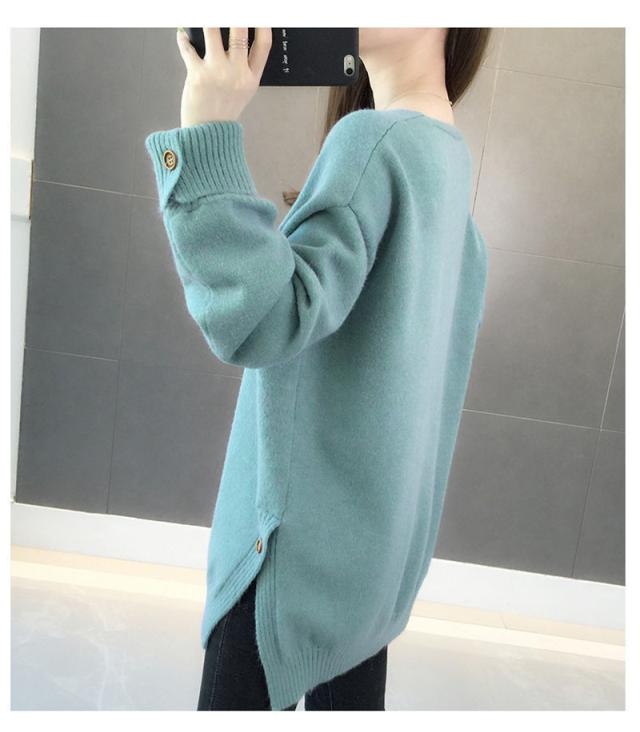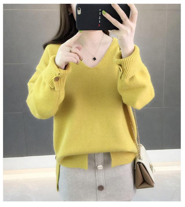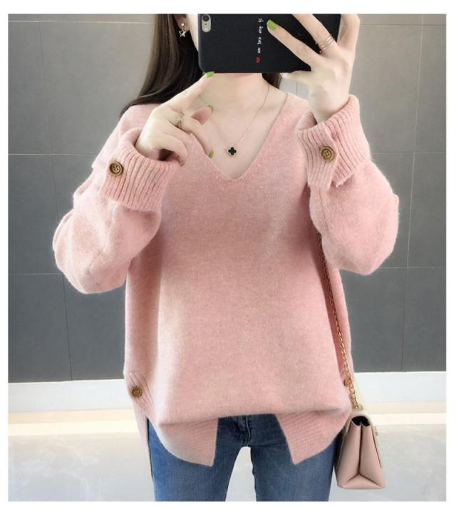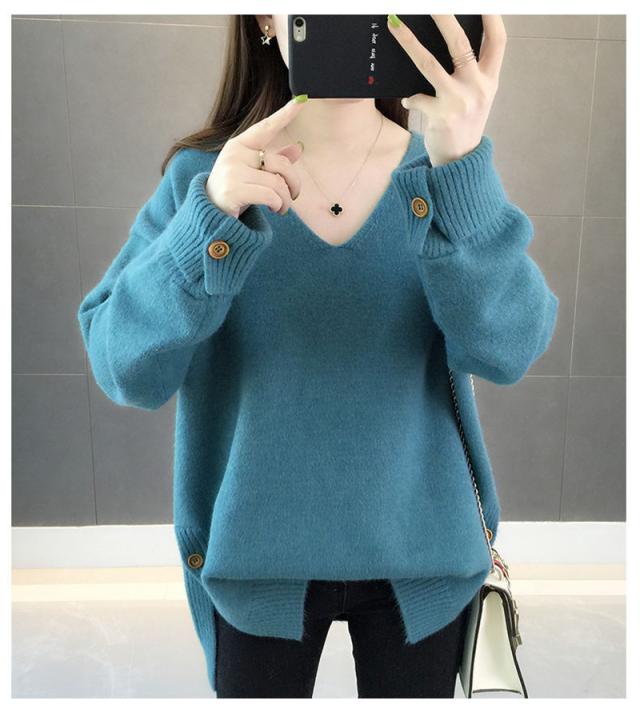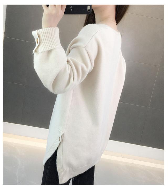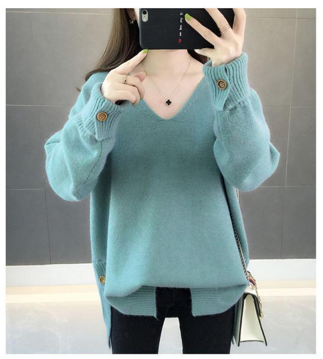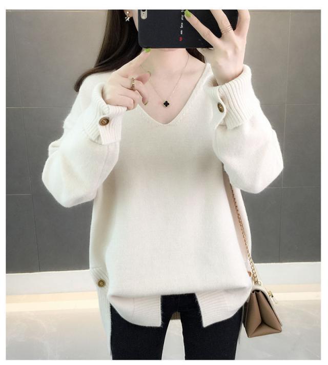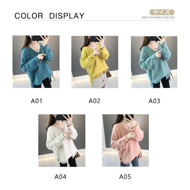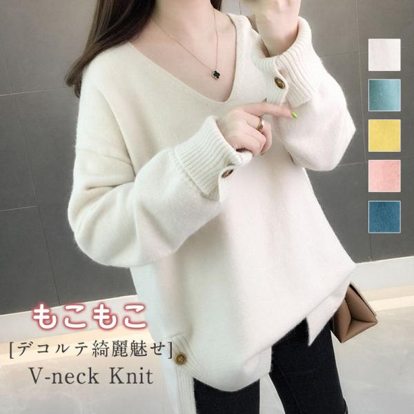 ニットセーター レディース Vネック ニットソー スリット入り 無地 トップス 秋冬 プルオーバー ストレッチ インナー 韓国風 ゆったり カジュアル