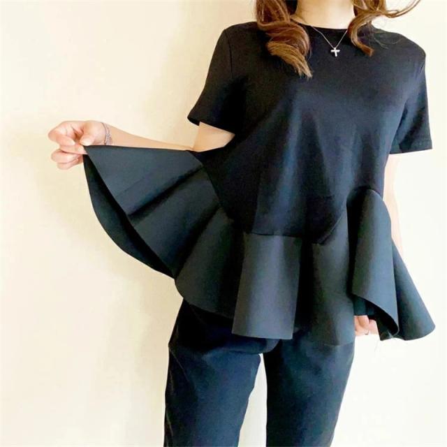 Tシャツ 裾フリル 半袖 ペプラム 無地 トップス 春 夏 一部即納 レディース トップス 春夏新作 おすすめ おしゃれ ファッション カジュアル