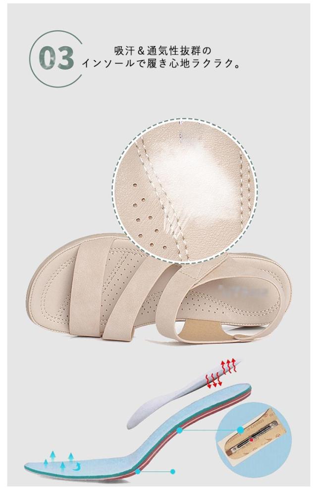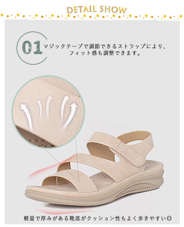 サンダル レディース ストラップサンダル フラットサンダル ベルクロサンダル マジックテープ ぺたんこ 歩きやすい 軽量 楽 履きやすい PUレザー コンフォートサンダル ローヒール カジュアルサンダル 疲れない 疲れない おしゃれ シンプル 春 夏 通勤 アウトドア