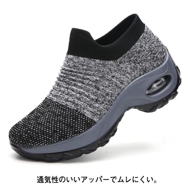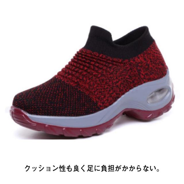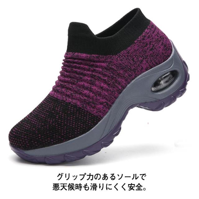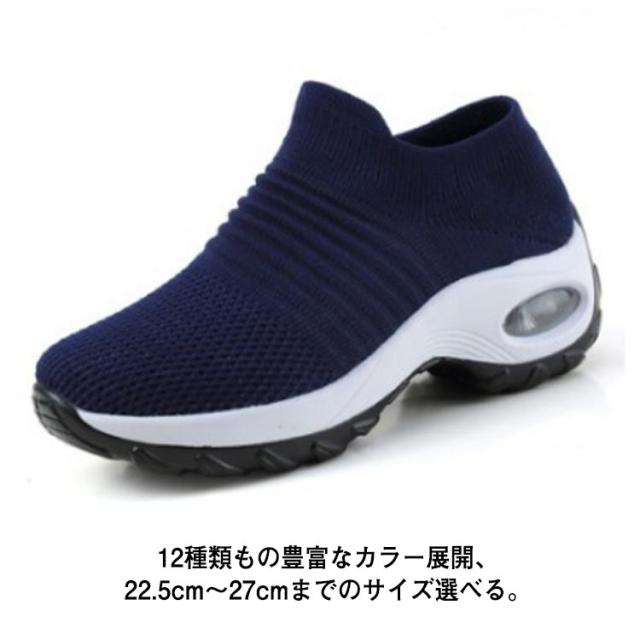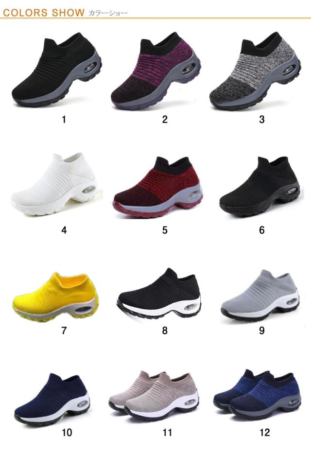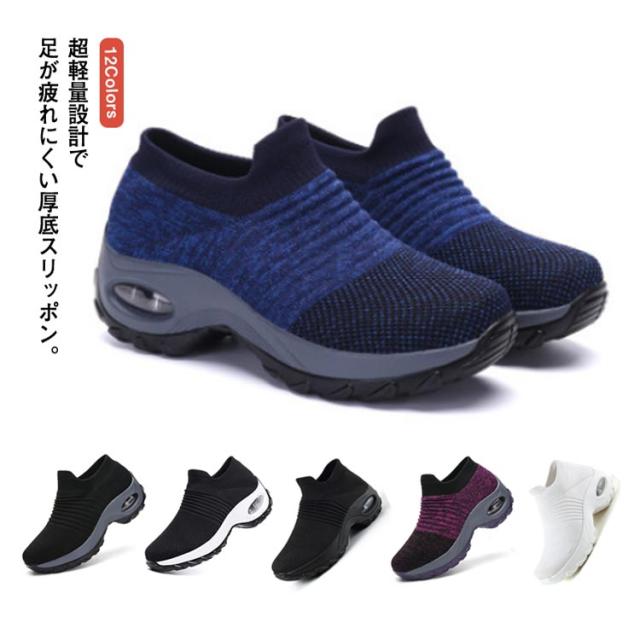 | 超軽量設計で足が疲れにくい厚底スリッポン。 グリップ力のあるソールで悪天候時も滑りにくく安全。 通気性のいいアッパーでムレにくい。 冬場は暖かく、夏場は熱がこもりにくい。 クッション性も良く足に負担がかからない。 ニット素材で履き心地◎紐のないスリッポンタイプで着脱が楽。 幅が広いので締め付け感がない 12種類もの豊富なカラー展開、22.5cm〜27cmまでのサイズ選べる。 ジムやランニング、ウォーキング、普段着にもお薦めな一足。 | |