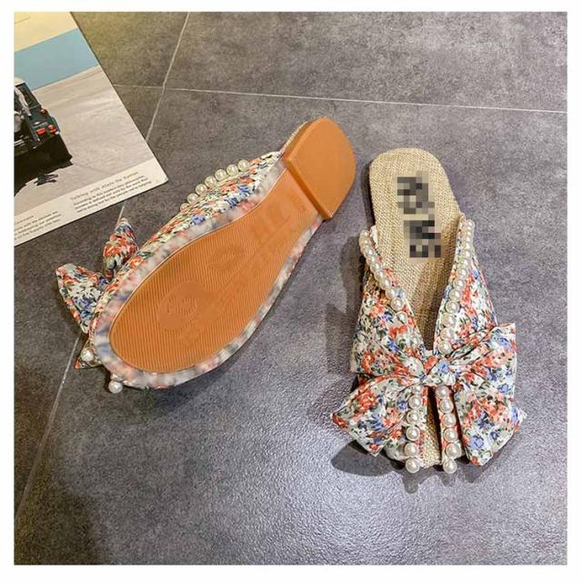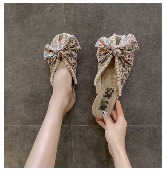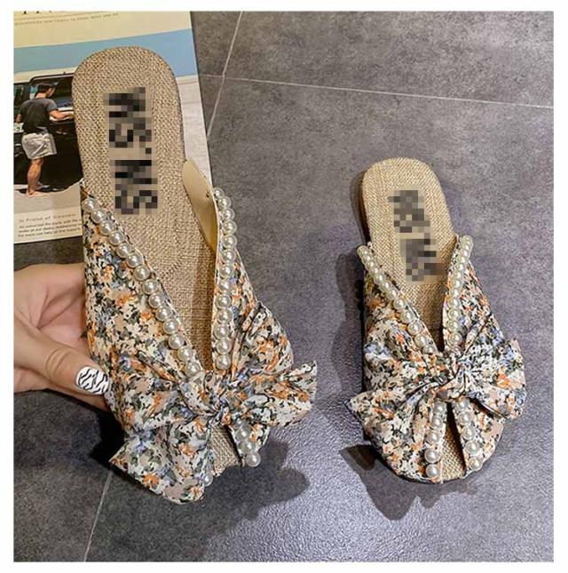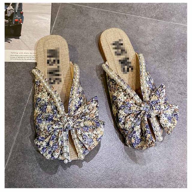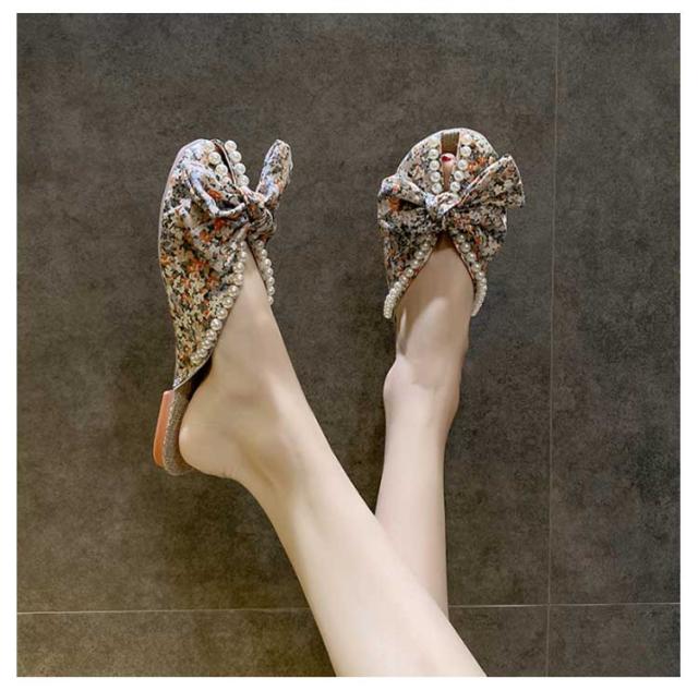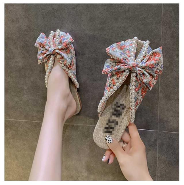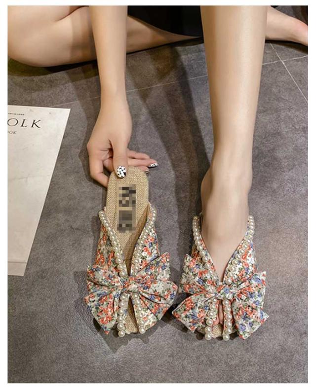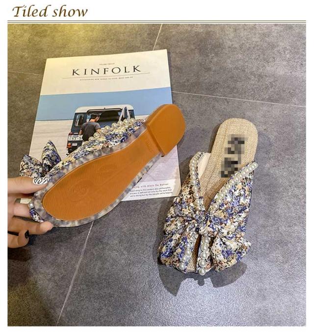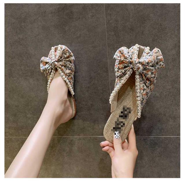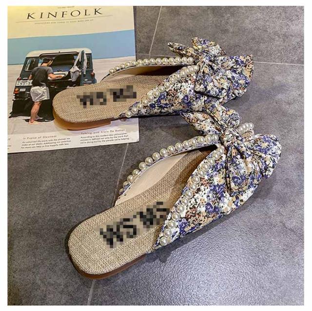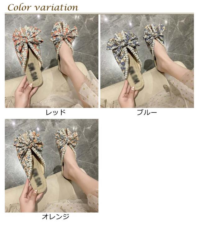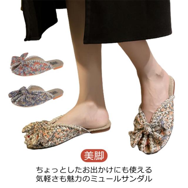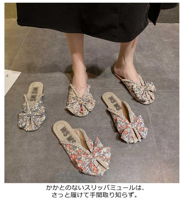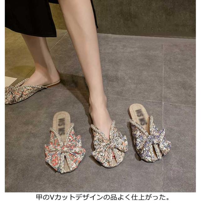 送料無料 ミュールサンダル パンプス レディース 春夏 Vカット ローヒール フラットシューズ かかとなし 歩きやすい ペタンコ スクエアトゥ スリッポン サマーシューズ 靴 外履きスリッパ 花柄 ビジュー かわいい お洒落 カジュアル 脚長 美脚 きれいめ