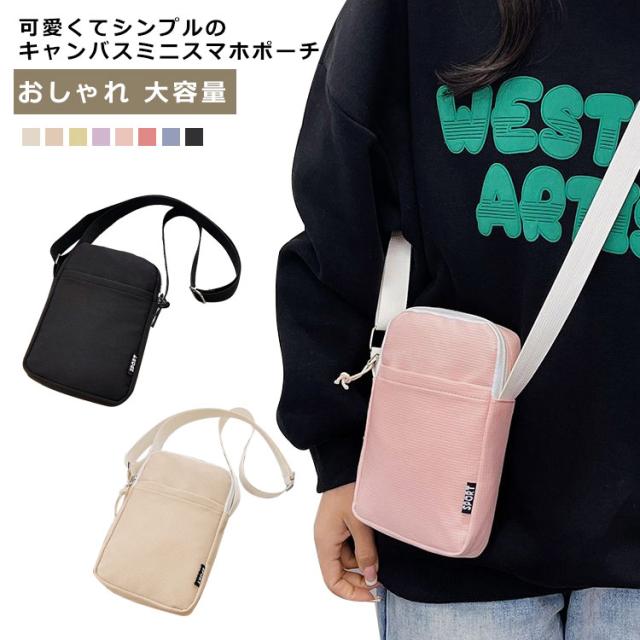 ポケット付き 帆布 スマホポーチ ポーチ 縦タイプ スマホ入れ レディース メンズ スリム スマホショルダー キャンバスポーチ 斜めかけ バッグ ポシェット 軽量 無地 おしゃれ 大容量 薄型 ミニポーチ プレゼント ギフト 送料無料