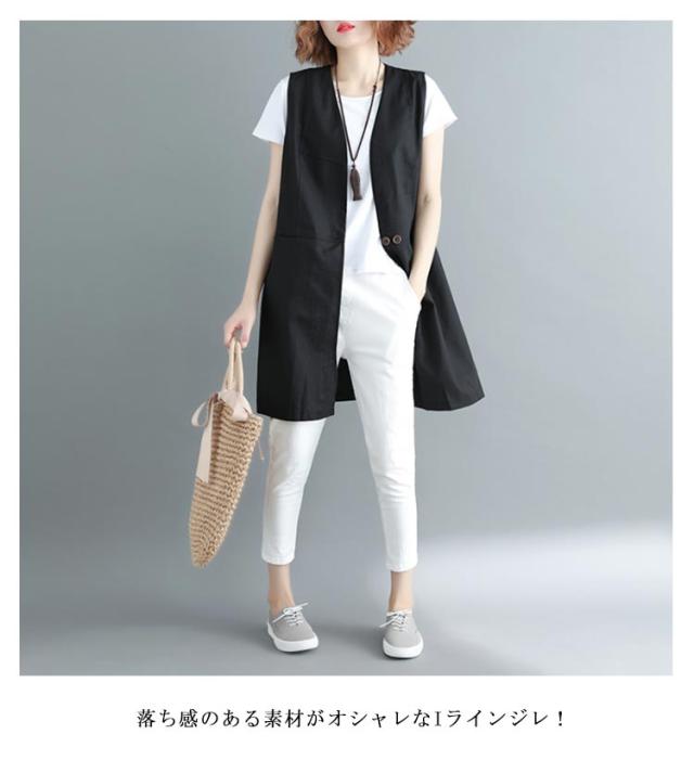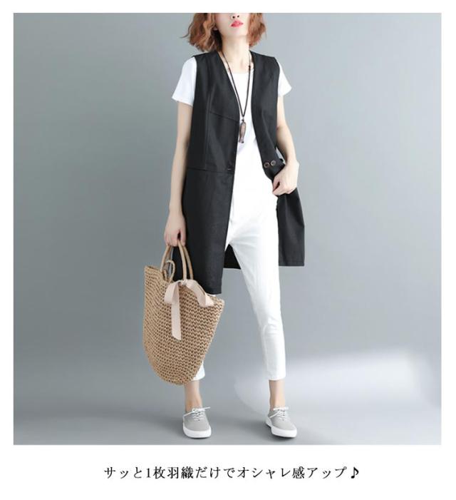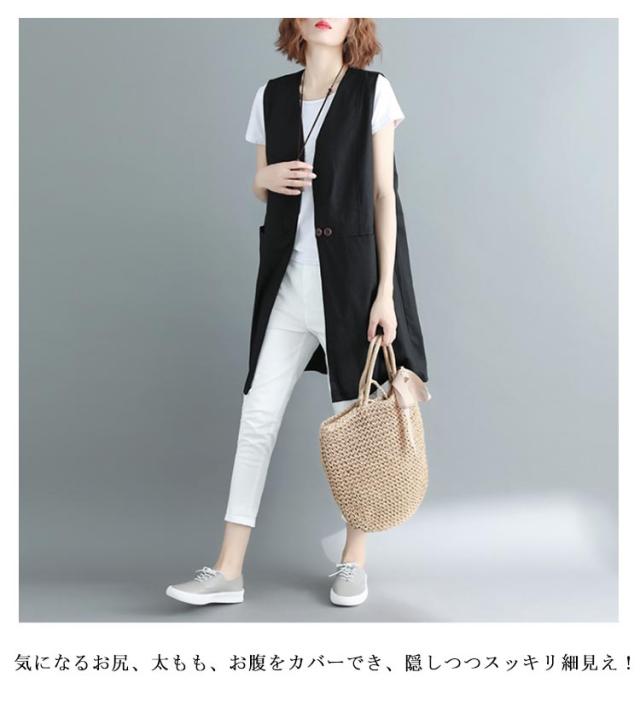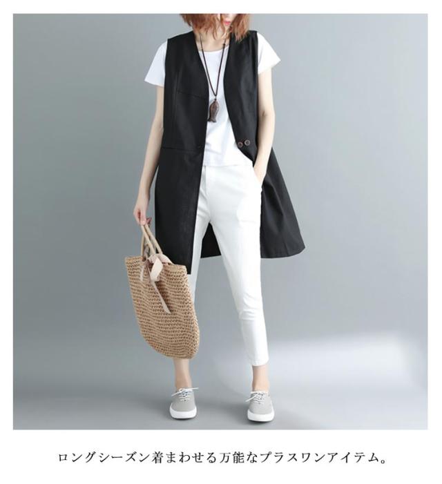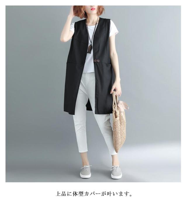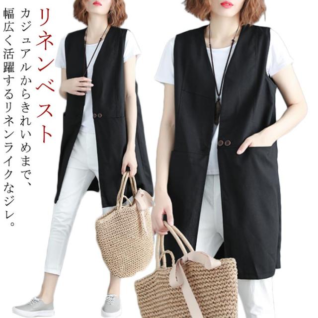 ベスト レディース 夏 リネン ノースリーブ ロングジレ トレンチベスト 無地 トップス ロングベスト レディース ジレ フォーマル 春 秋 冬 大きいサイズ ゆったり 大人 OL 通勤 20代 30代 40代 50代 送料無料