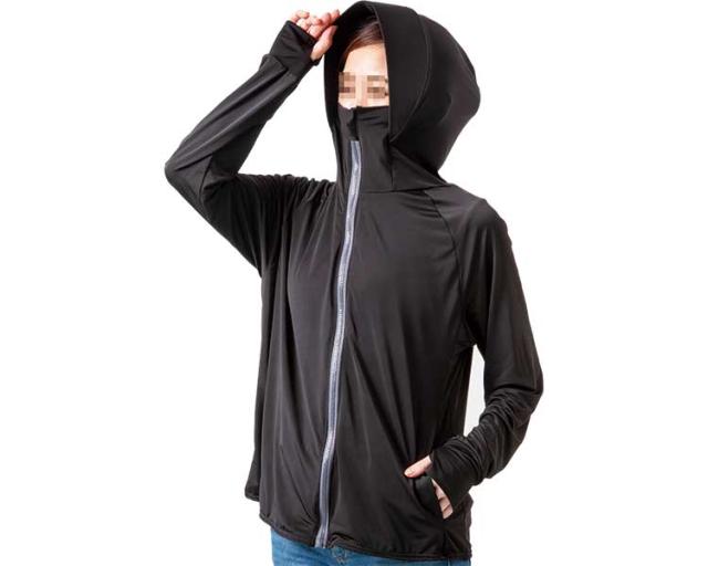 ・地面からの照り返し、上からの紫外線からもしっかりガード。大きめのフードだから髪型も気にならない。
