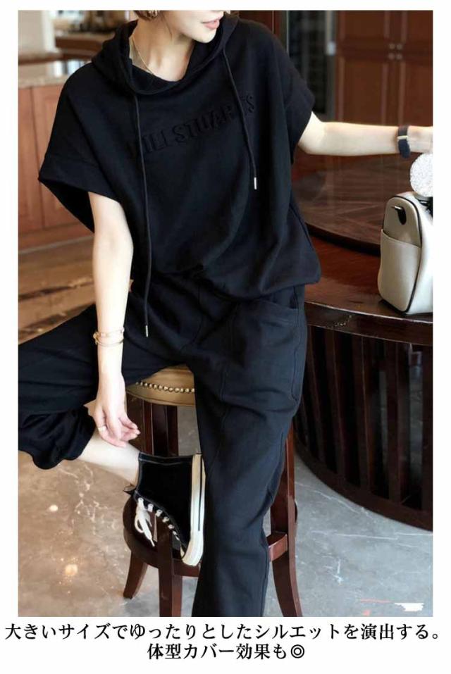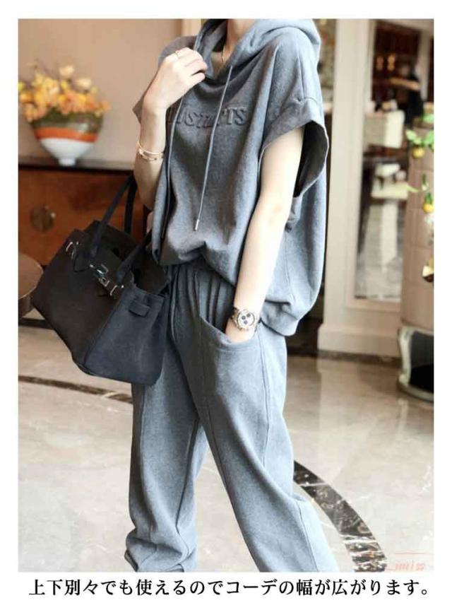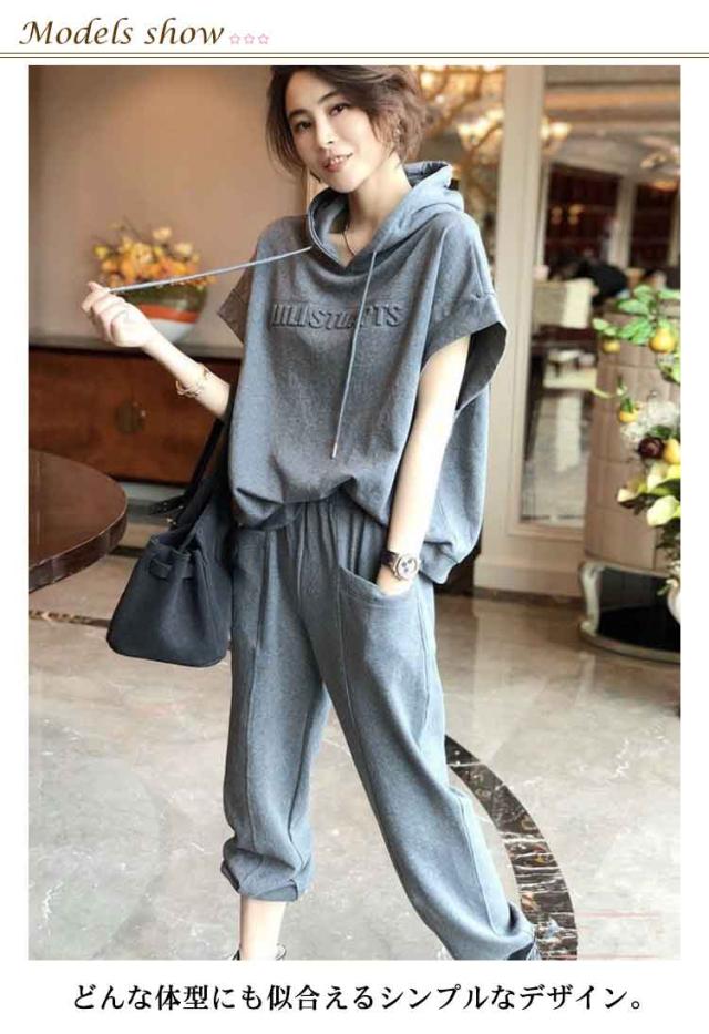 カジュアルセットアップ レディース スウェット 2点 上下セット 半袖 おしゃれ 夏 ジャージ フード付き スウェットパンツ 無地 ゆったり 着痩せ 体型カバー 春秋 大きいサイズ シンプル 部屋着 運動着 スポーツ お出かけ ギフト 送料無料