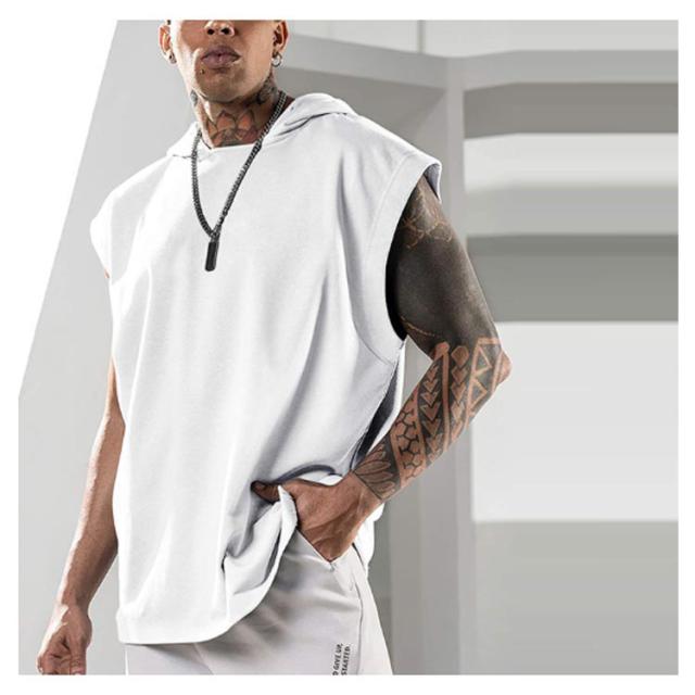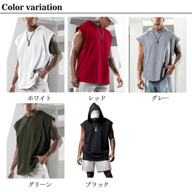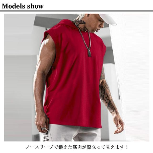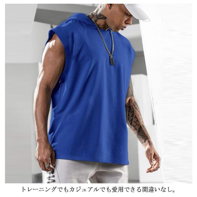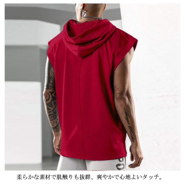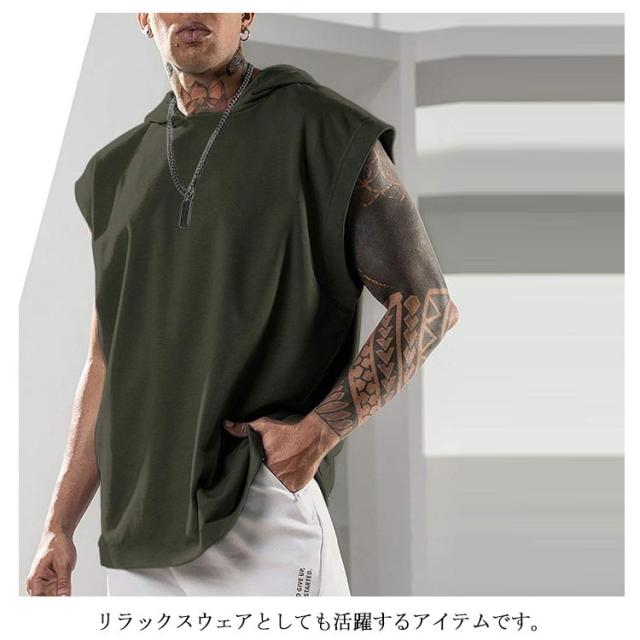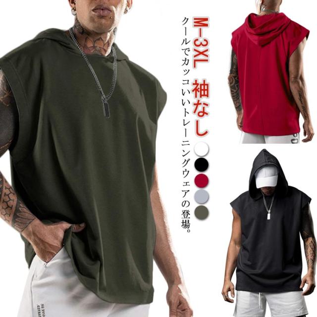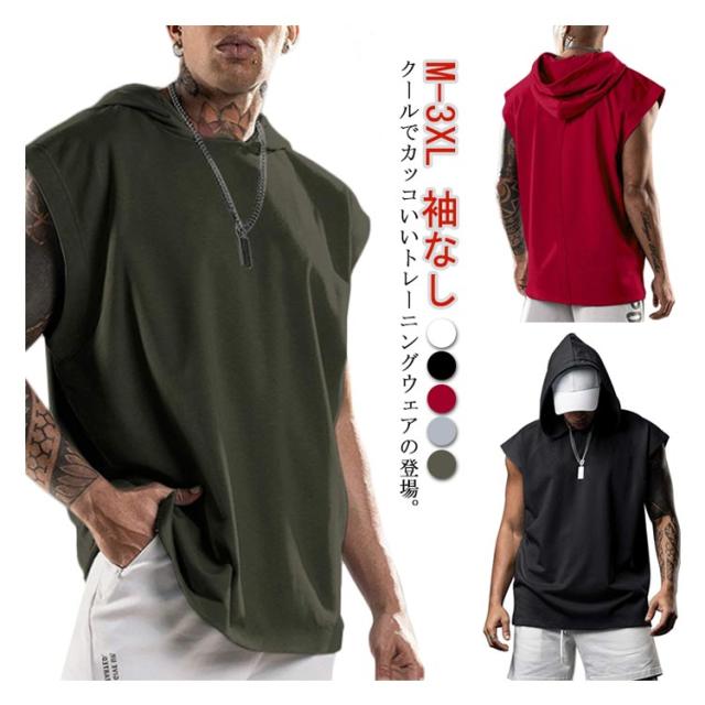 パーカー メンズ ノースリーブ 無地 夏用 プルオーバー タンクトップ お洒落 袖なし トップス カットソー スポーツ 筋トレ トレーニング カジュアル フード付き 男性用 夏服 父の日 送料無料