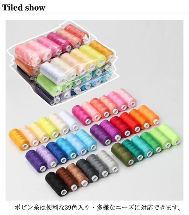 | カラフルな6色糸で布に合せて糸選び! 摩擦と綿毛を回避でき、切れにくくて滑らかな質感を保ちます。 ボビン糸は便利な39色入り・多様なニーズに対応できます。 ハンドメイド初心者さんや、いろんな色の手作り小物を作りたい方へ。 | |