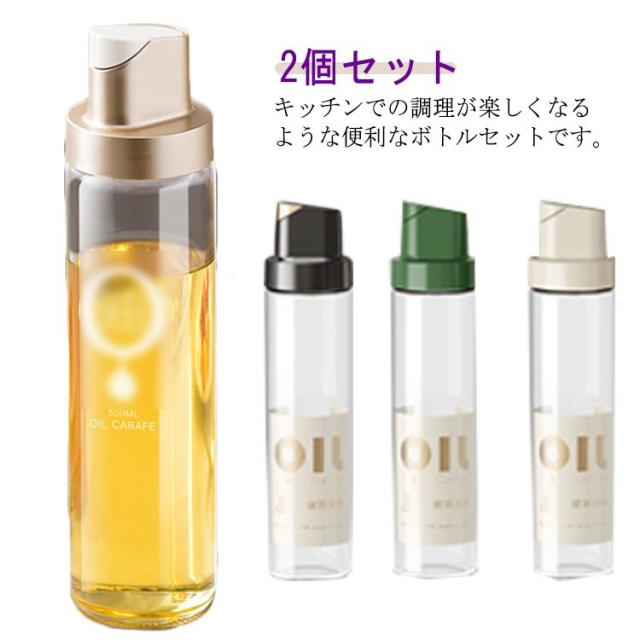 オイルボトル 2個セット 調味料ボトル 詰め替え用 スリム 500ML 液だれしない 漏れ防止 片手 クリア オイル差し オイル入れ 調味料入れ 醤油差し 油差し 酢 ガラス お洒落 キッチン用品 飲食店 送料無料