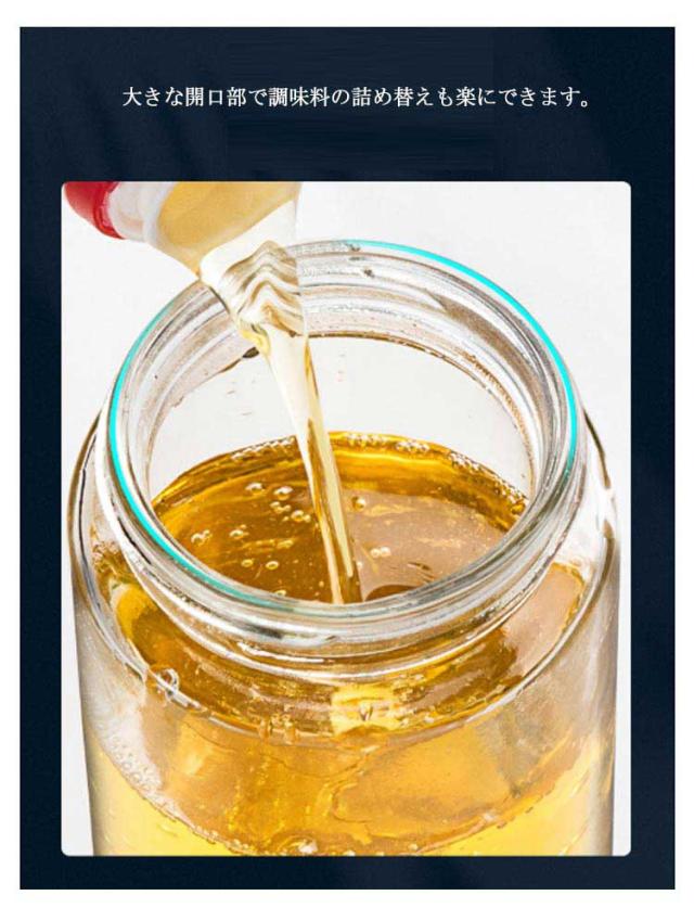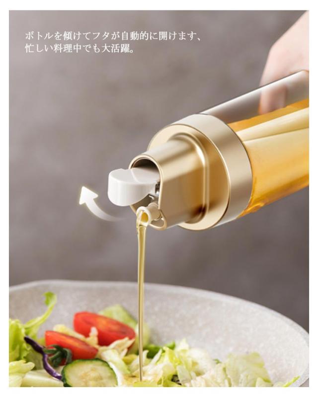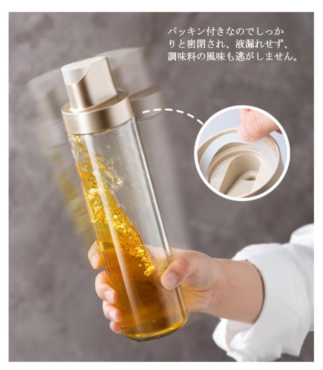 | キッチンでの調理が楽しくなるような便利なボトルセットです。 ボトルを傾けてフタが自動的に開けます、忙しい料理中でも大活躍。 液だれせず、無駄なく使える設計で、使い勝手も抜群です。 パッキン付きなのでしっかりと密閉され、液漏れせず、調味料の風味も逃がしません。 容器の中身が透けて見えるので、残量が一目で分かるのも嬉しいポイント! 大きな開口部で調味料の詰め替えも楽にできます。 パーツは分解して洗えるので、お手入れが簡単で衛生的です♪ | |