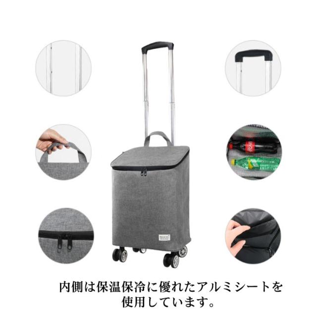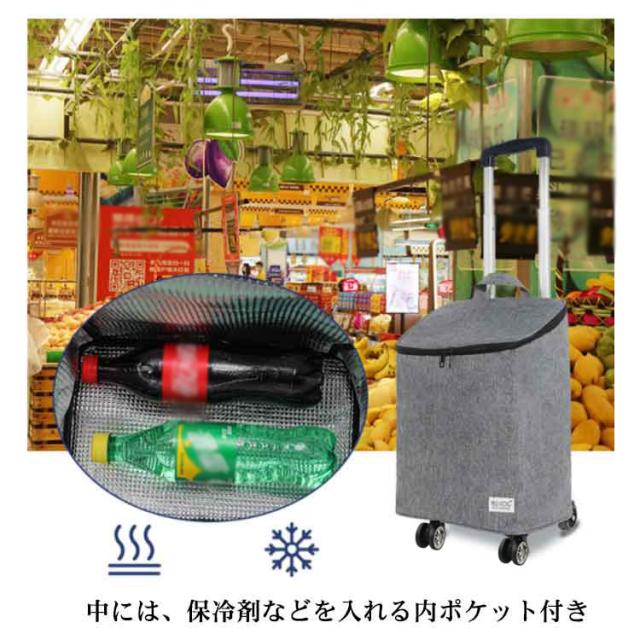 ショッピングカート 4輪 保温保冷 ショッピングキャリー キャスター付き 横押し 2way 360°回転キャスター ショッピングキャリー バッグ 大容量 軽量 ダブルファスナー 撥水加工 縦型 ソフトキャリー 取り外し 高さ調節 三段階調整 買い物 旅行 おしゃれ プレゼント ギフト