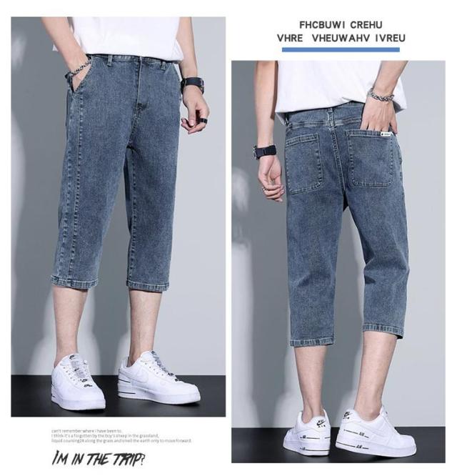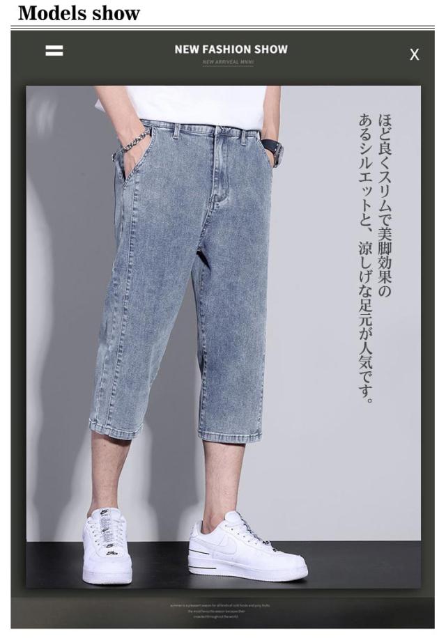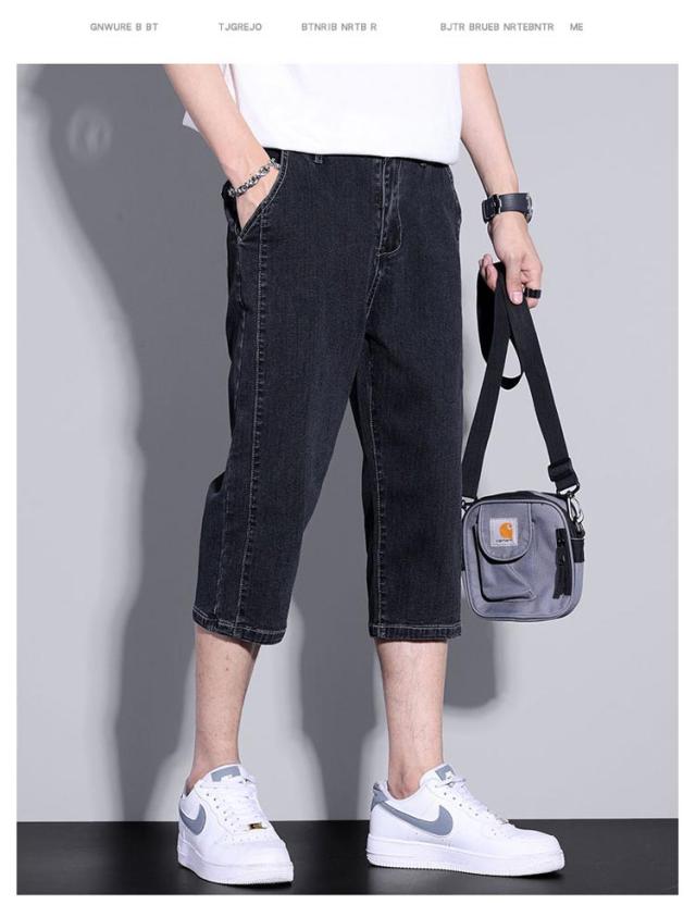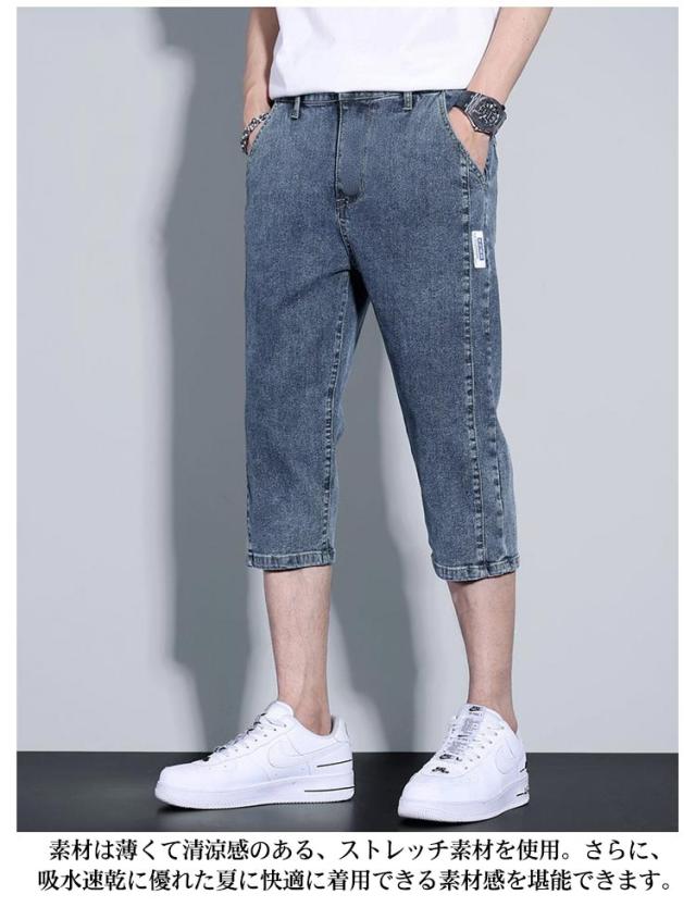 デニム ハーフパンツ 膝下丈 メンズ ショートパンツ 7分丈 クロップドパンツ スリム 細身 デニムパンツ 短パン ストレッチ 薄手 夏 春 カジュアル 大人 学生 ブラック 黒 ブルー グレー 大きいサイズ M L XL 2XL 3XL 【送料無料】