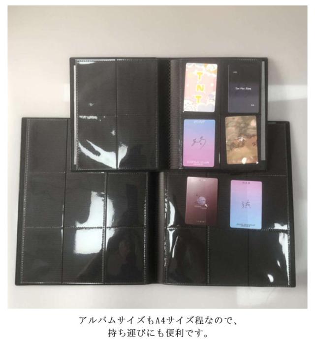 | チェキ用の大容量アルバムです。チェキで撮った写真を整理整頓し保管できます。 エンボス加工が施されたPP製の黒台紙で、チェキの写真が一層映えます。 ポリプロピレン素材で摩擦に強くチェキの保管に適しています。 1ページあたり9枚、見開きで18枚、最大360枚収納可能です。 アルバムサイズもA4サイズ程なので、持ち運びにも便利です。 家族、友達、恋人と撮りためた写真をいつでも手軽に思い出すことができます。 | |