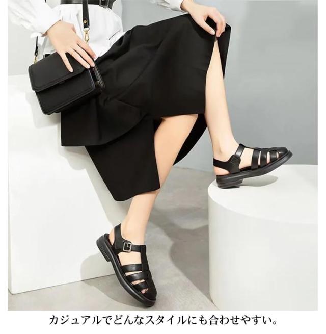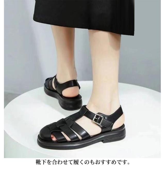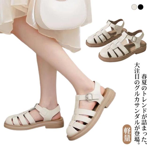 グルカ サンダル ストラップ 前詰まり サンダル つっかけ サンダル レディース 大きいサイズ 歩きやすい ボリュームソール グルカサンダル トレンド 軽量 ぺたんこ 合皮 歩きやすい おしゃれ 通学 通勤 カジュアル スタイリッシュ 白 ブラック