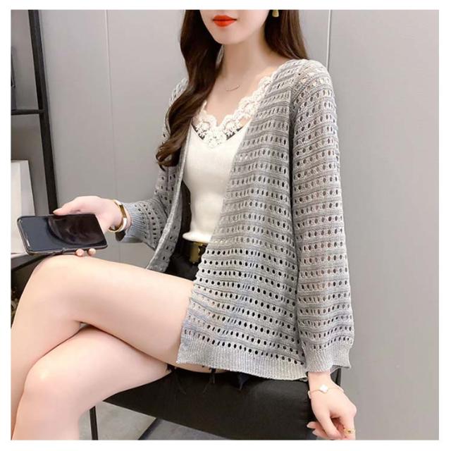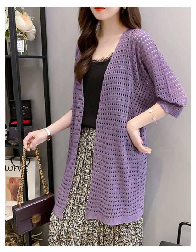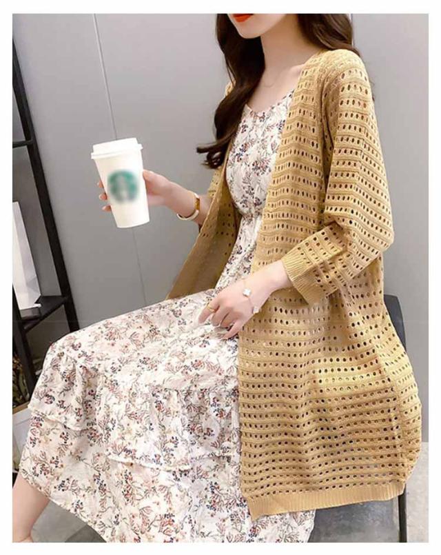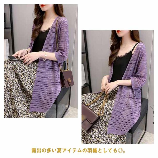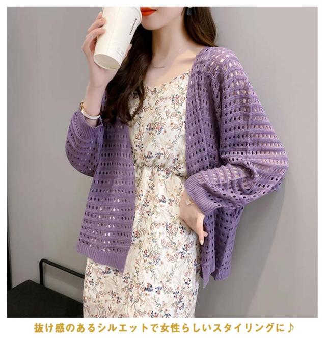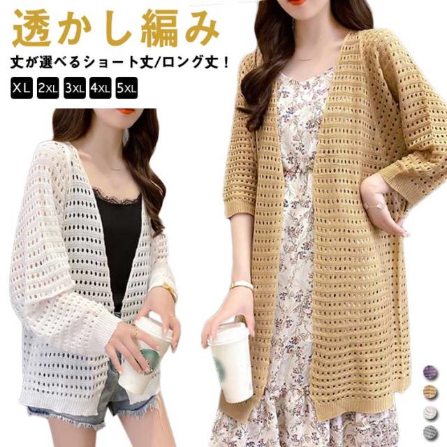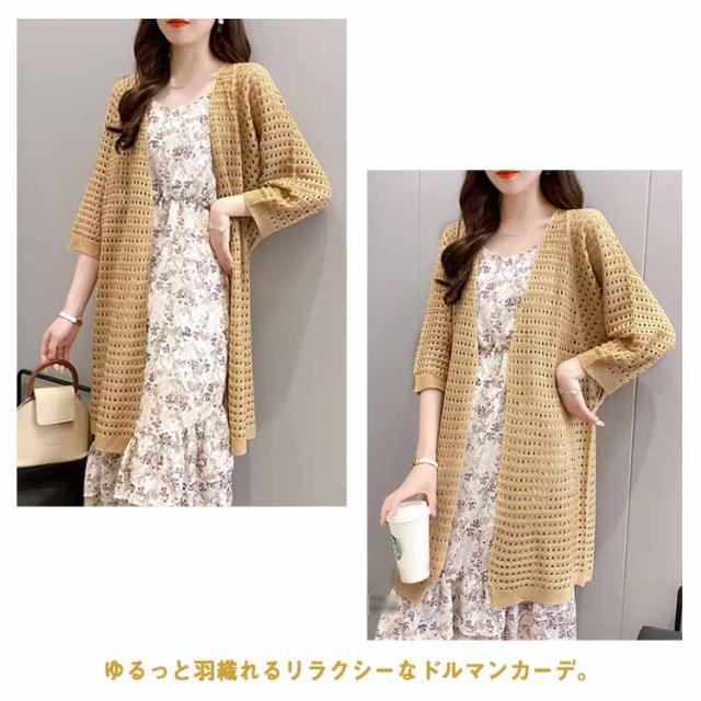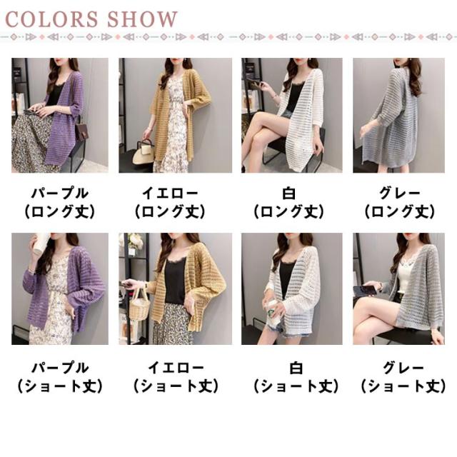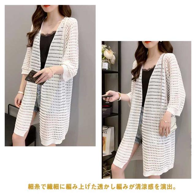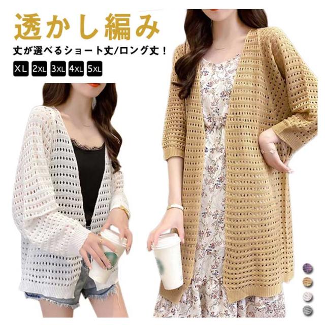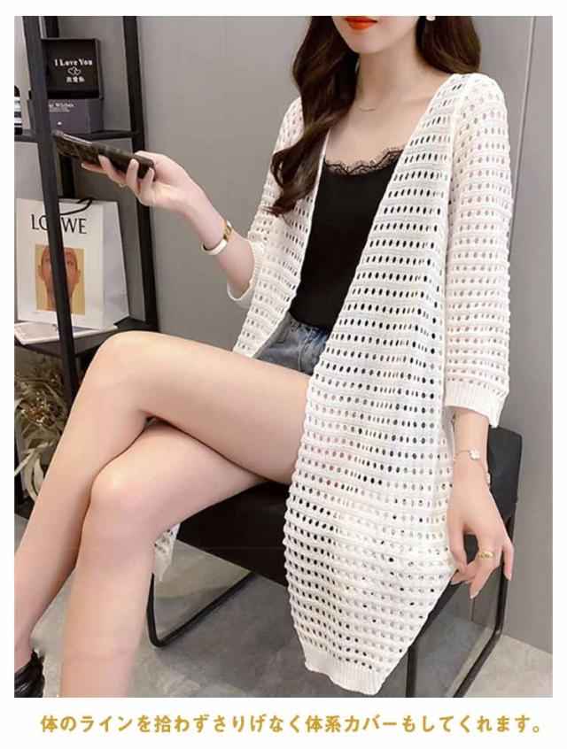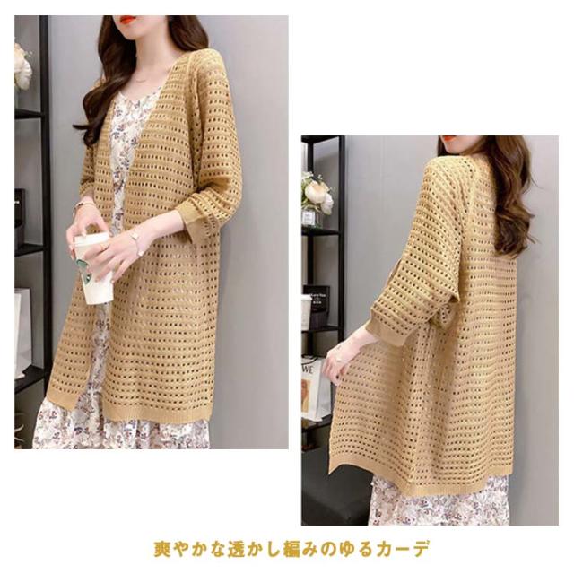 丈が選べる!カーディガン ロングカーディガン レディース ロングカーデ ロング ショート丈 透け感 透かし編み サマーニット サマーカーディガン 夏カーディガン アウター 長袖 ニットカーディガン ライトアウター おしゃれ ゆったり 体型カバー 送料無料