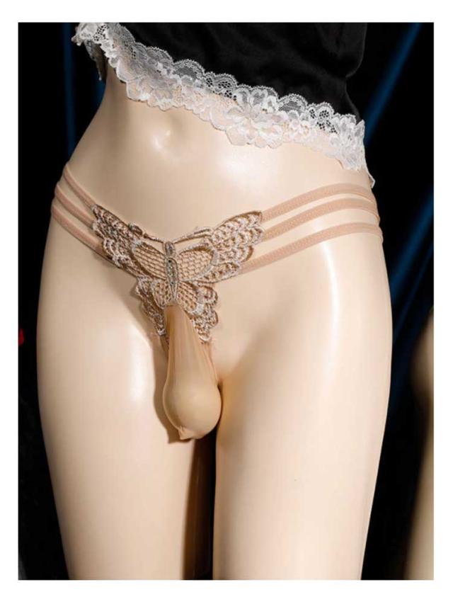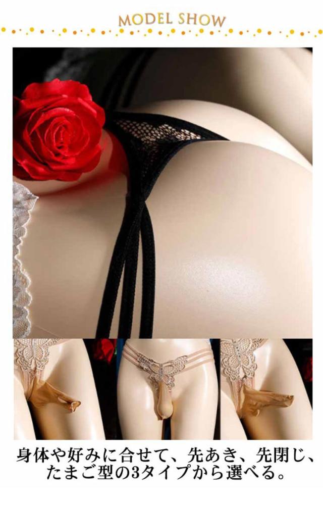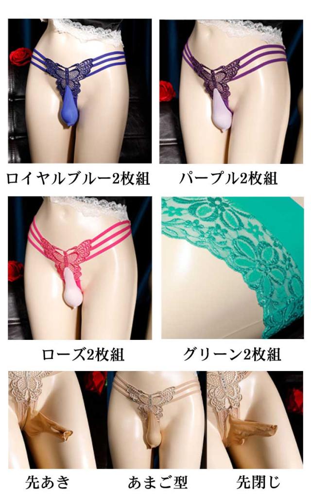 2枚組 メンズショーツ Tバック メンズ 竿付き インナー アンダーウェア 女装用 竿出し ぞうさん 先閉じ 男性用 レースショーツ セクシー 女装 コスプレ 紐パン 下着 蝶々 送料無料
